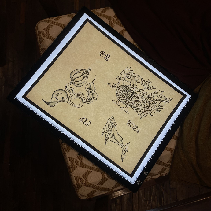 This collection draws inspiration from the ancient visual language of Sri Lanka, from temple carvings and Kandyan ornamentation to mythical guardians and sacred geometry. Each flash design carries echoes of history, reshaped into bold, modern compositions made for timeless skin.